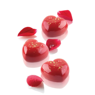 A silicone mould perfect to create romantic heart-shaped mini desserts of a volume of 30 ml. Each mould has a special and innovative border in the upper part which gives a particular round shape to the base of pastries.