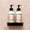 The double bracket is typically used for hand wash and hand lotion at the vanity or conditioning shampoo and body wash in the shower.