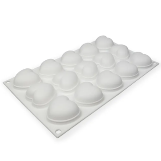 A silicone mould perfect to create romantic heart-shaped mini desserts of a volume of 30 ml. Each mould has a special and innovative border in the upper part which gives a particular round shape to the base of pastries.