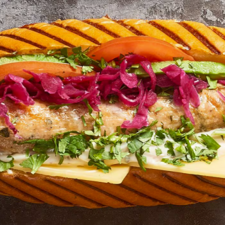 - Spread each side of the roll with HELLMANN'S Real Aioli. Lay the tomato and avocado on one side and the cheese on the other.